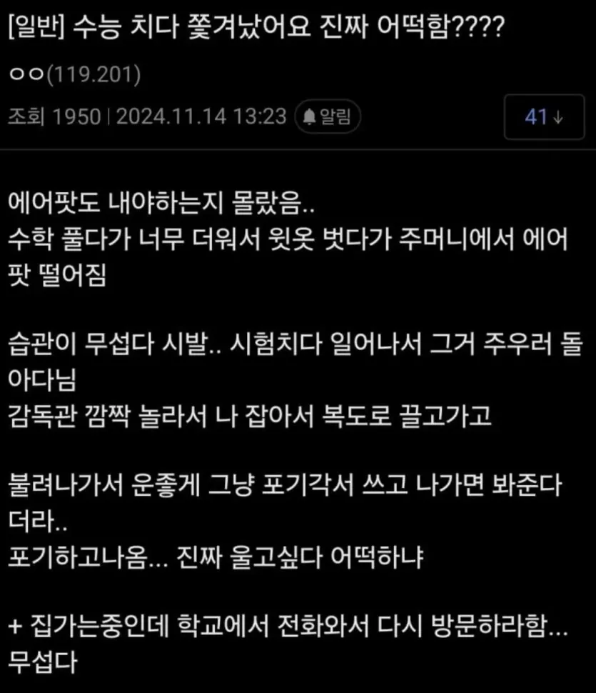 수능 치다 쫓겨난 학생