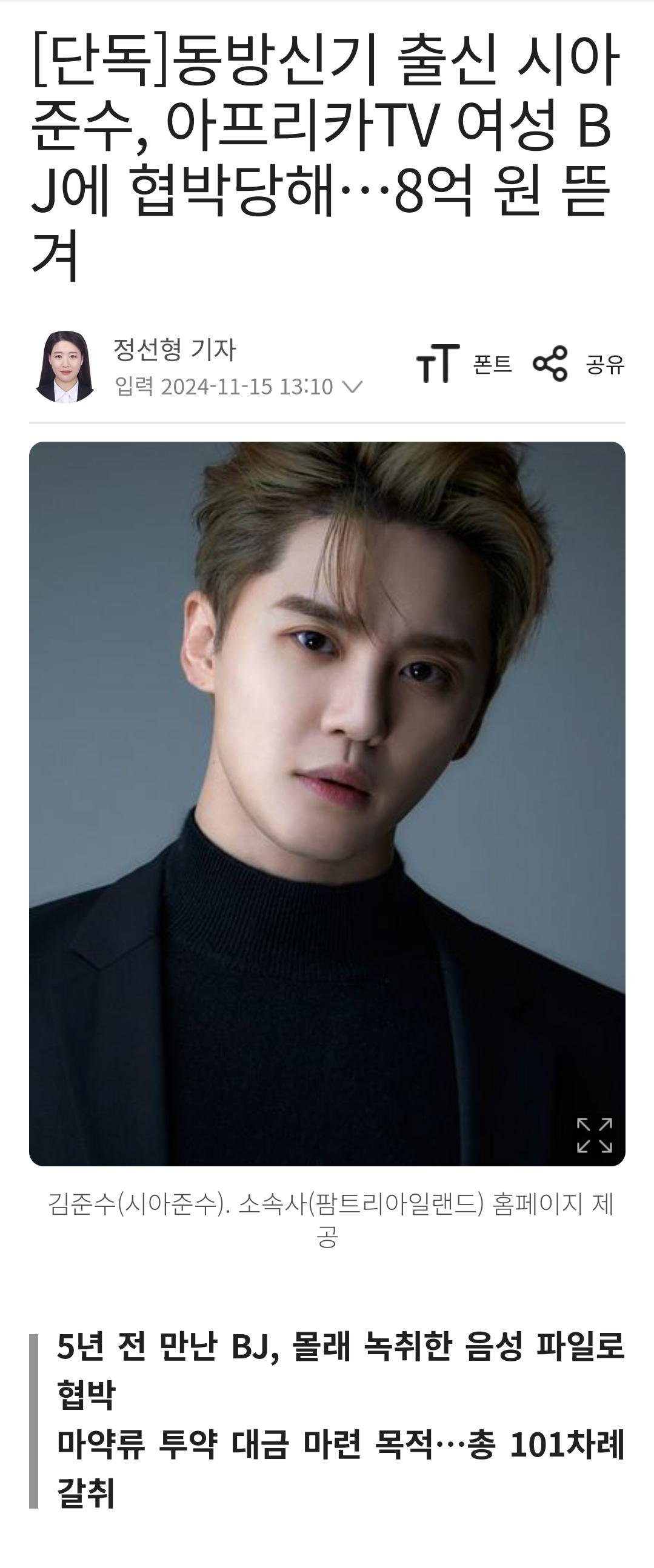 시아준수, 아프리카TV 여성 BJ에 협박당해 8억원 뜯겨...
