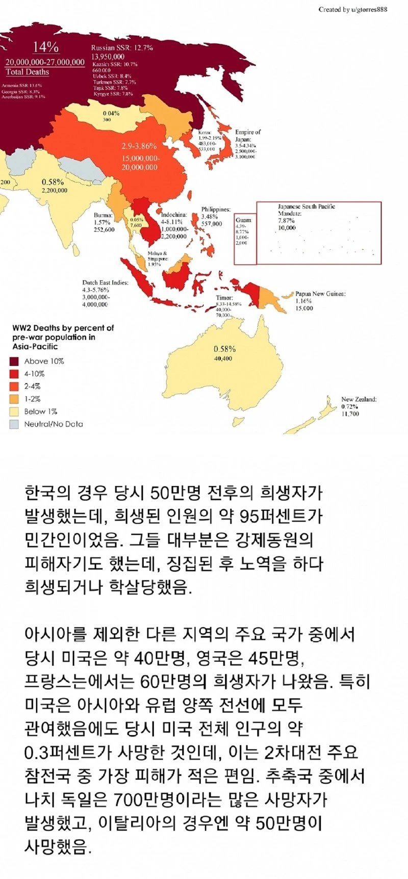 2차 세계대전 당시 아시아 국가별 사망자 수