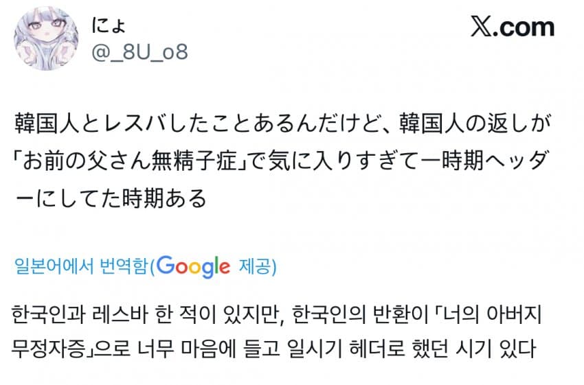 기타 게시판 - 일본인들이 감탄하는 한국 욕.jpg rotla 0 870 0 2025.10.26 13:07 핑프 부모 홀수 니네 아빠 무정자증 내로남불 욕 자체보단 창의력에 감탄하는듯 0