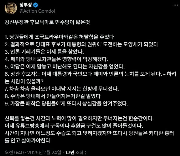 강선우 후보자 낙마로 민주당이 잃은 것