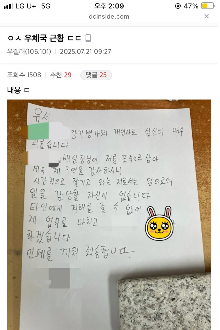 현재 추노 찍고 있는 ㅇㅅ우체국 근황..
