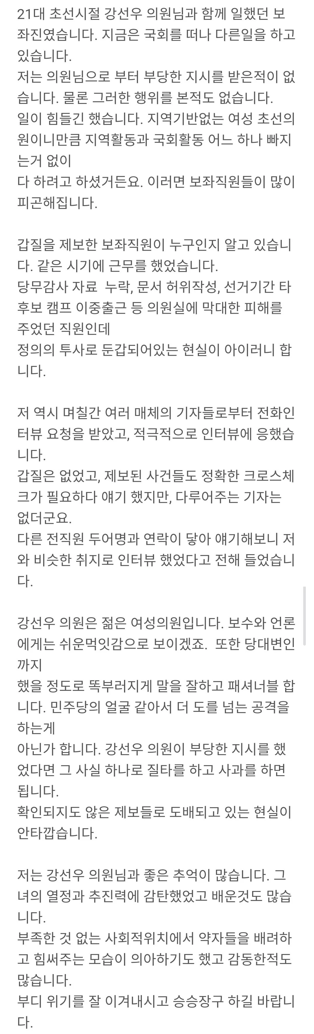 [펌] 강선우 의원실 보좌진였습니다.