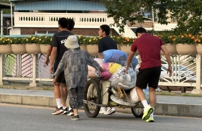 | 지난달 23일 프로축구 K리그1 김천상무 소속 군인 선수들이 리어카를 끌고 가는 할머니를 돕는 모습. (사진=김천상무 인스타그램) |