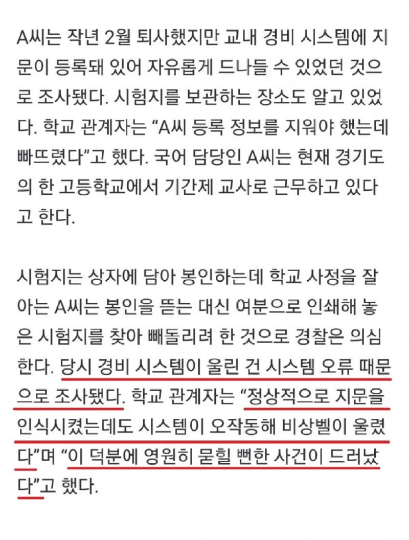 안동 시험지 유출 사건이 드러난 것은 경보 오작동 덕분?