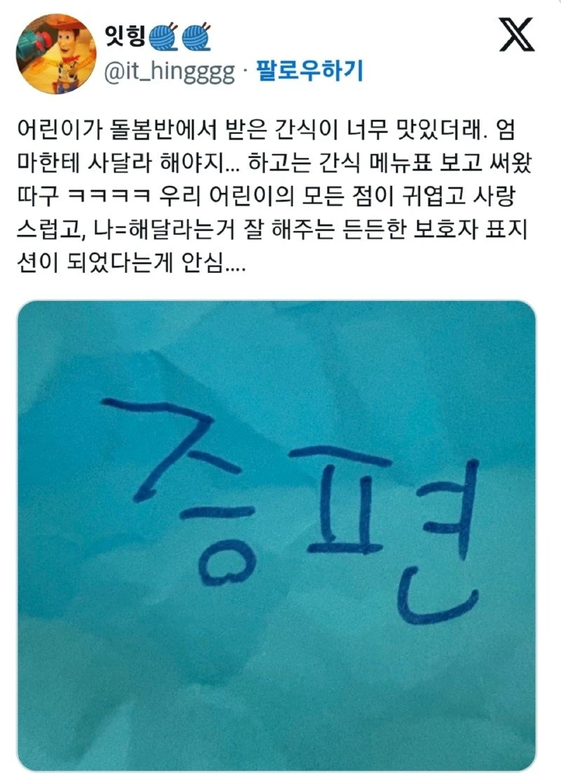 돌봄반에서 먹은 간식이 너무 맛있었던 아이.jpg