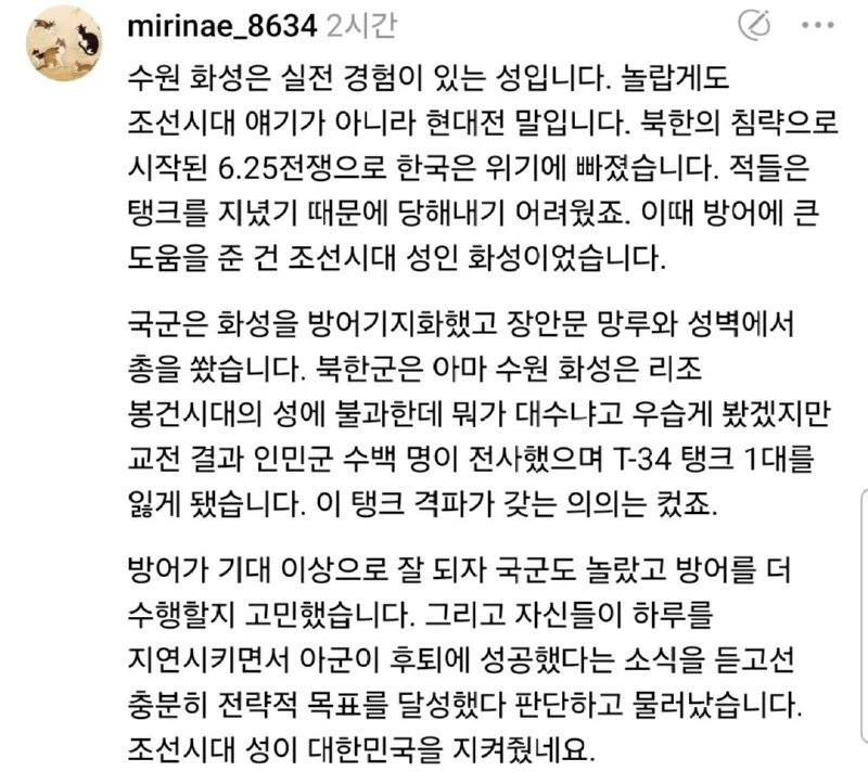 수원화성은 의외로 실전경험이 있다 rotla 0 83 0 2025.07.21 20:35 이거랑 같이 보시면 라면에 김치입니다 http://todayhumor.com/?humordata_1929076 2021년11월 0