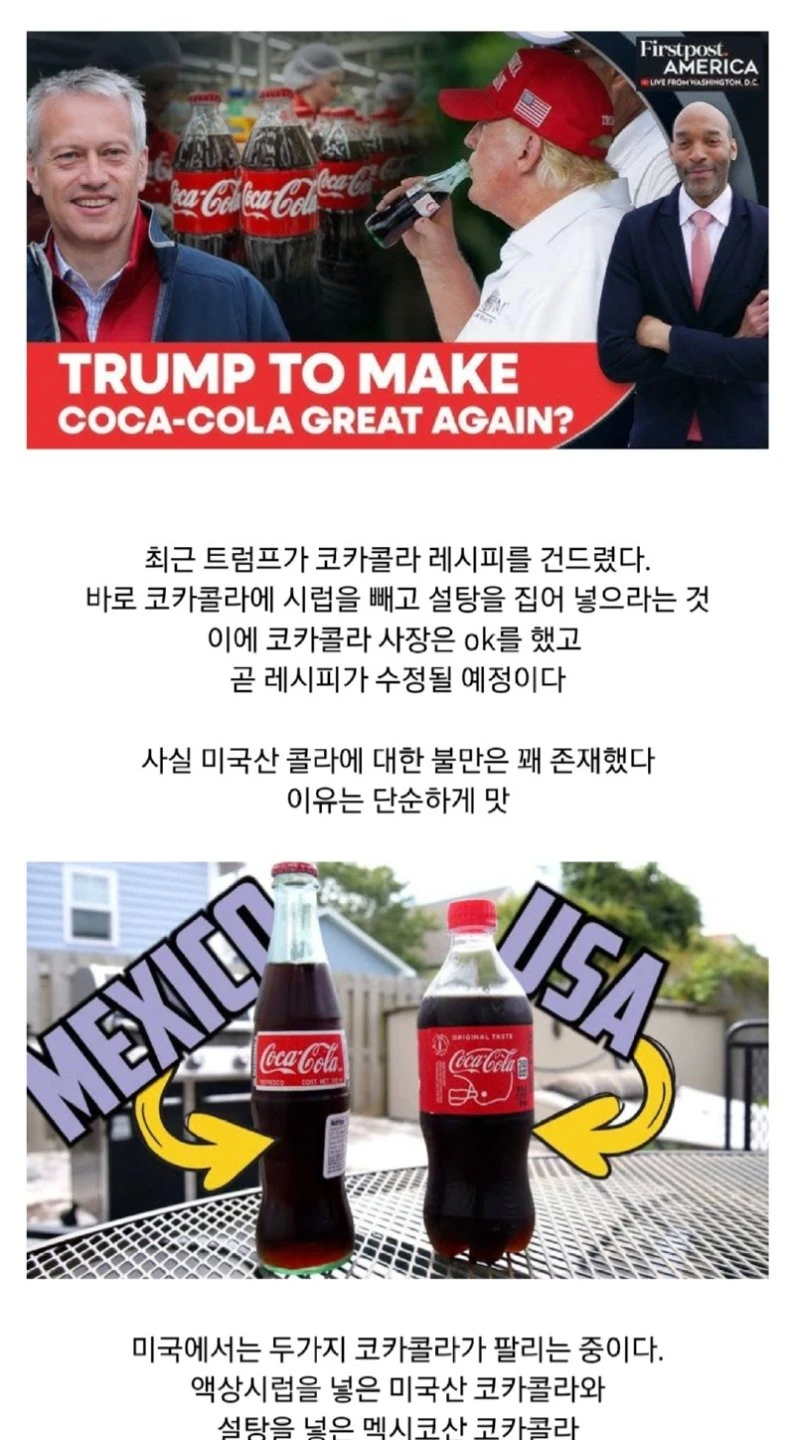 트럼프가 코카콜라 레시피를 건드려 난리난 미국