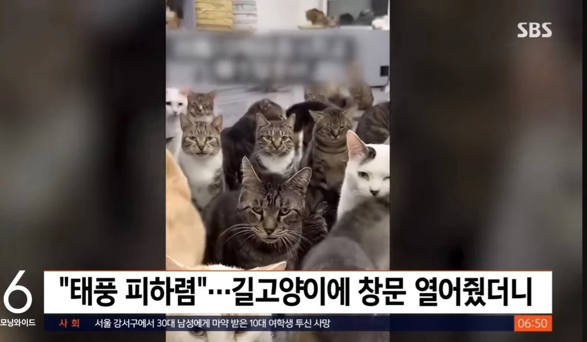 고양이들 태풍피하라고 집창문 열어줬더니