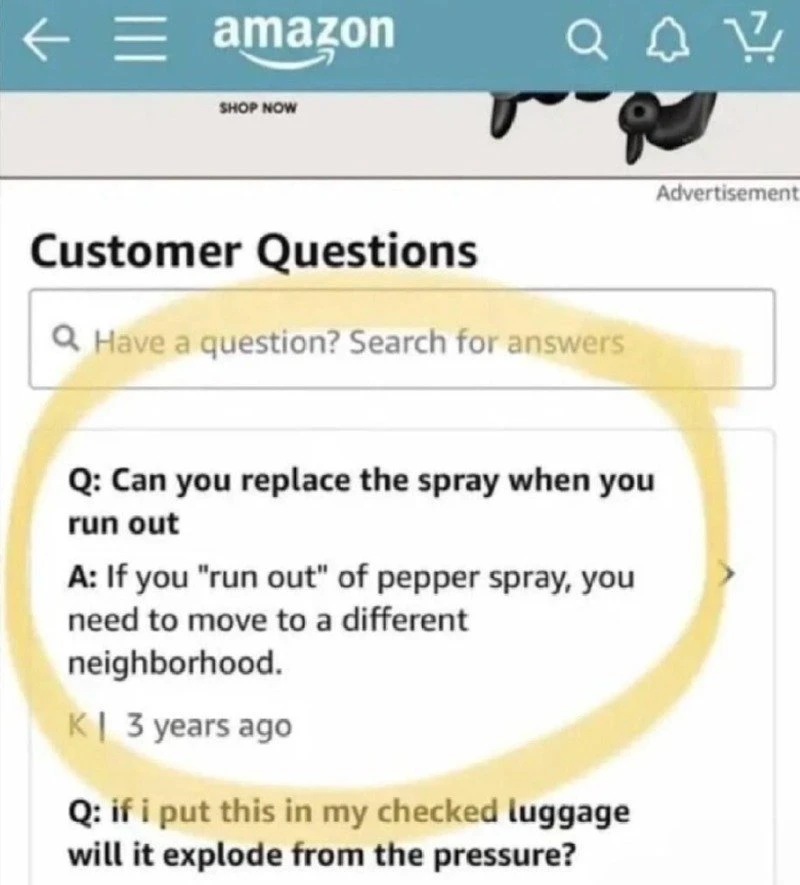 아마존의 후추 스프레이 상품 Q&A