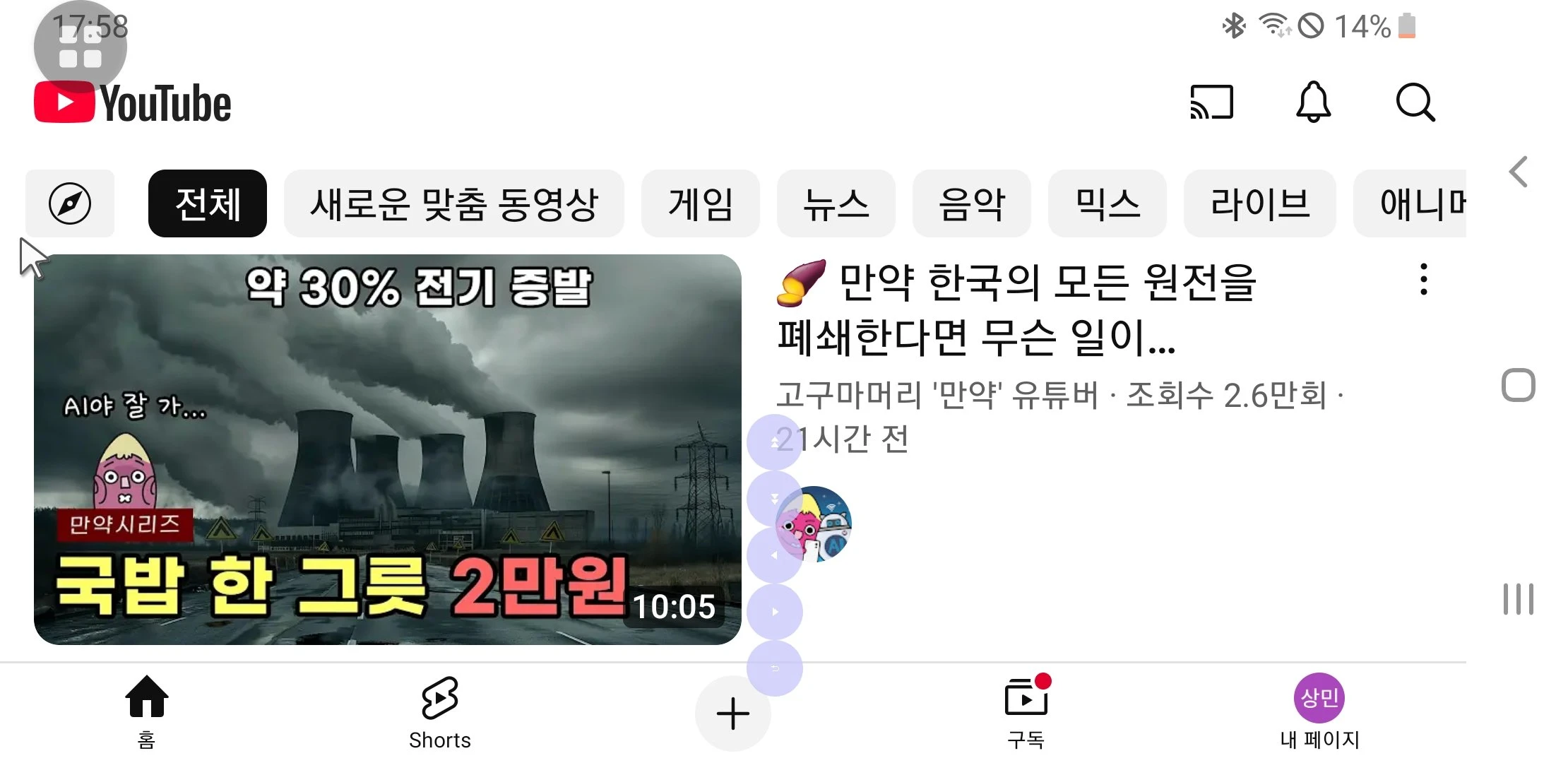 보자보자 하니까 원전내용 영상 보지도 않았는데 계속 알고리즘 떠서 빡쳐 올립니다. 현정부에 대해 무지성 100% 탈원전 할거란 호들갑 많이 봤는데 하필 이때 저러네요. 물론 저도 100% 탈원전 불가능 압니다. 근데 왜 하필 현정부 대표공약 ai 같이 들먹이고 민생지원금 억까요소인 인플레 타령 한거 보니 아무리 봐도 '응 느그 탈원전 정권 ai 못하고 베네수엘라 ^^' 하는 걸로 의심되는 공포 선동질로 보입니다. 다 집어쳐도 하필 ●●어린이 타겟 유튜브●●라서 어린이에게 반민주당 선동질하고 있는 듯해 더욱 소름끼치네요. 비슷한 성향 유튜브 중에 갑자기 북한 폐수 선동 퍼지는 차에 위성사진 검증한다고 들이대는 것도 봤는데 (아까 정부가 아니라고 조사결과 뜸) 여러모로 작업질이 전방위적으로 스물스물 나오는 것 같아요. 애들한테 뭘 선동질하고 있는 거요...