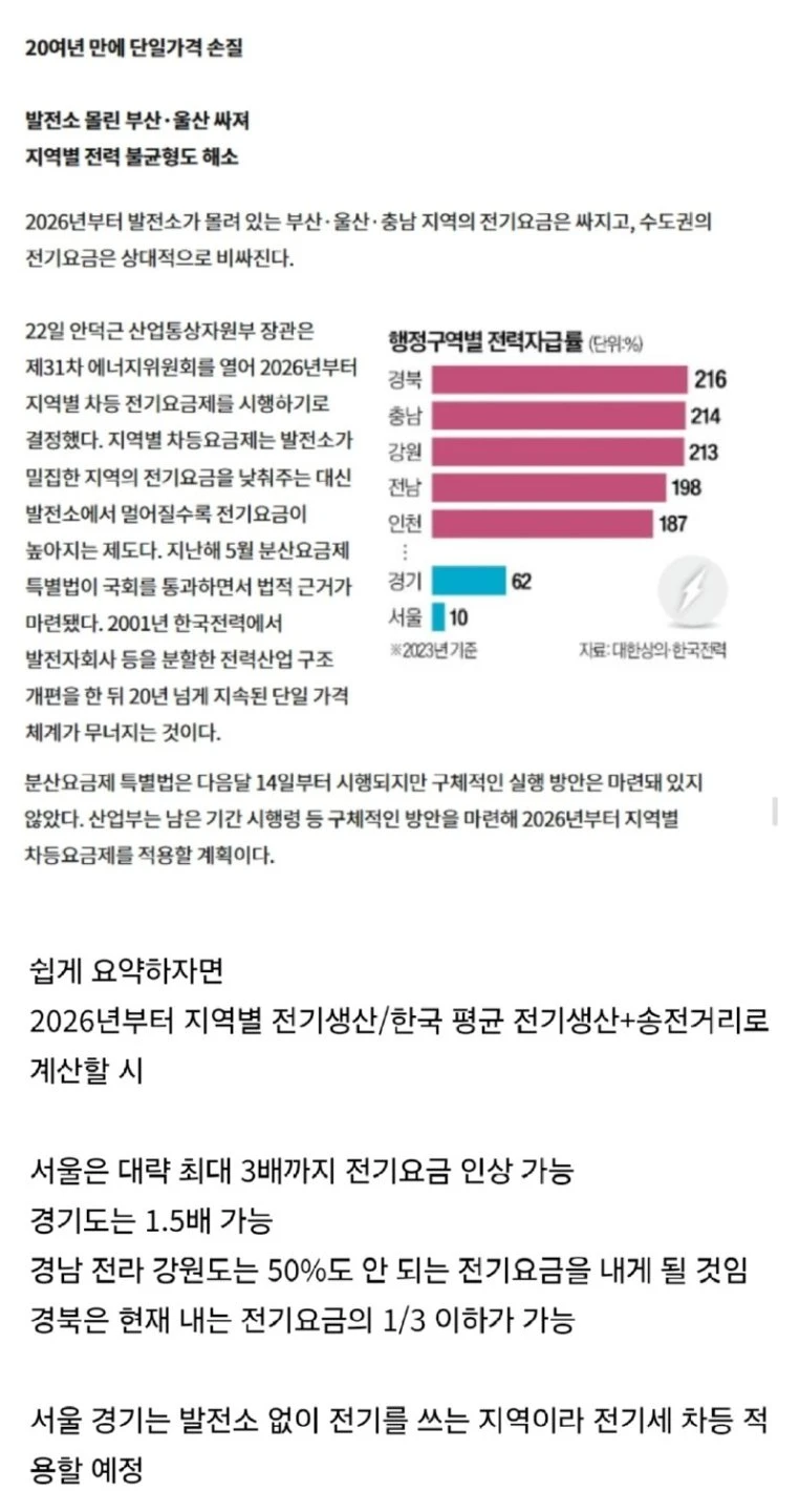 2026년부터 발전소 없는 지역은 전기세 오를 예정