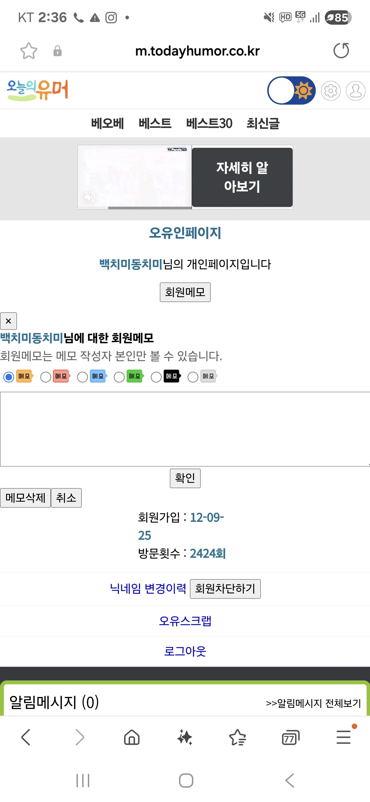 쪽지기능도못보고 댓글도못보고 ㅜ