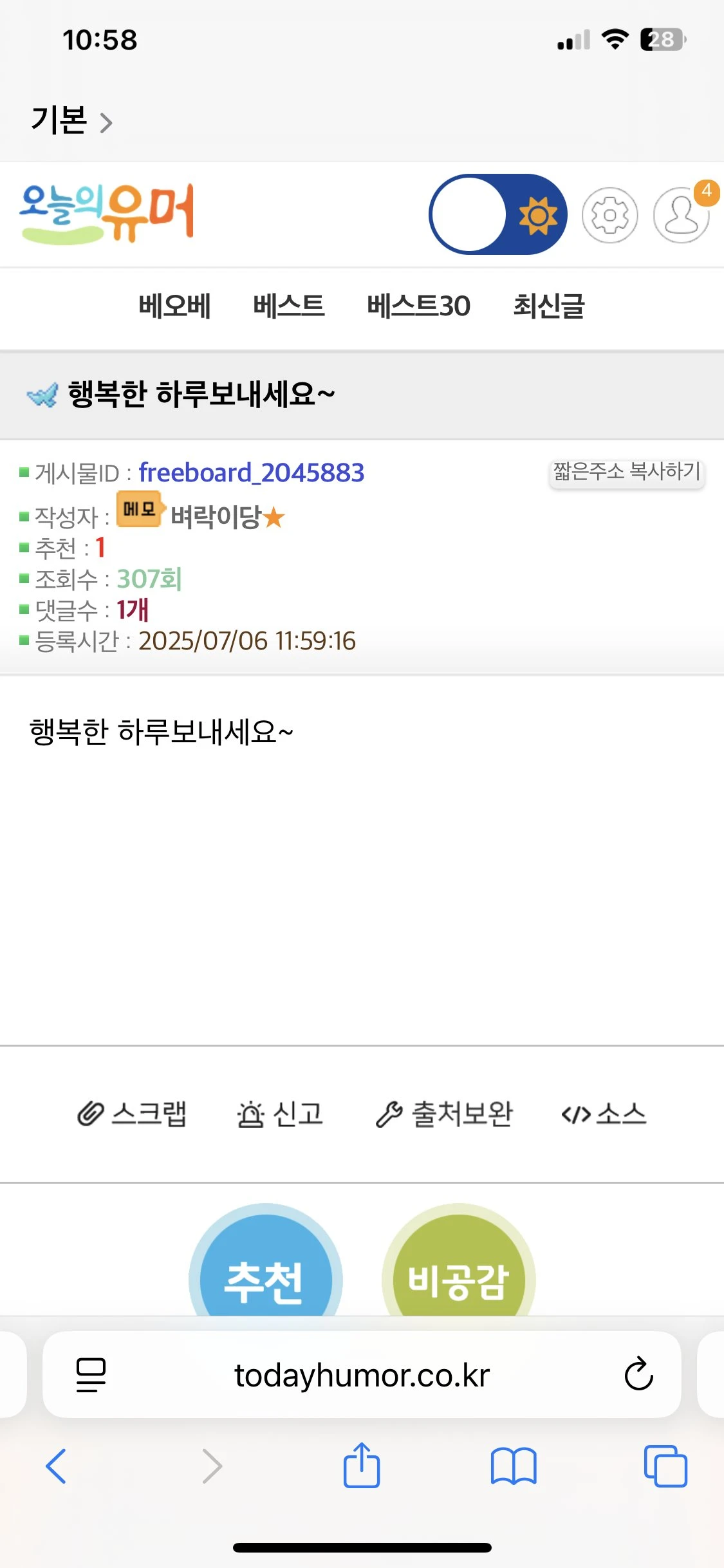 벼락이당 이 새끼 추천해주지 마세요 그냥 차단하세요
