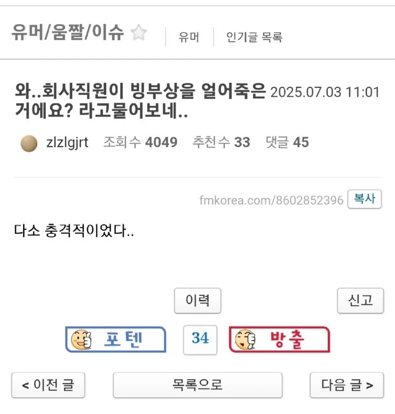 와..회사직원이 빙부상을 얼어죽은거에요? 라고물어보네..