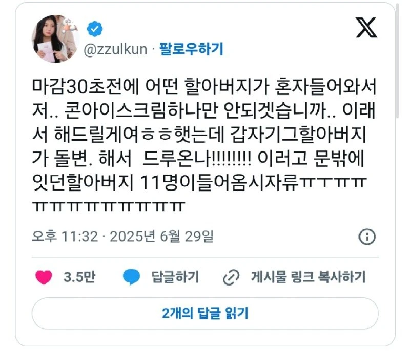 마감30초전에 어떤 할아버지가 혼자들어와서