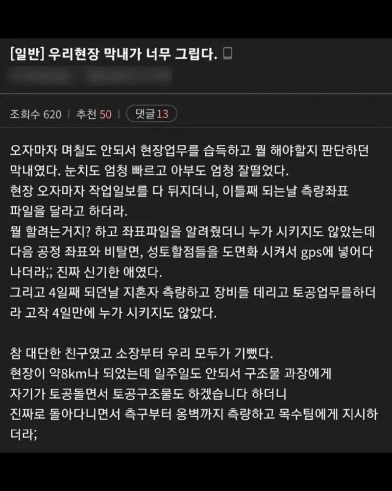 우리현장 막내가 너무 그립다