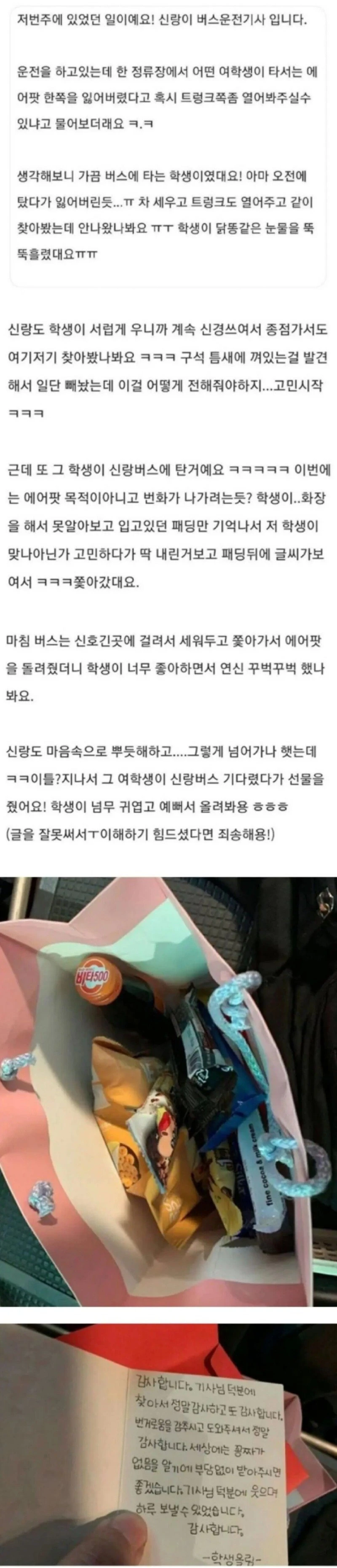 여학생에게 선물 받아온 남편 이야기