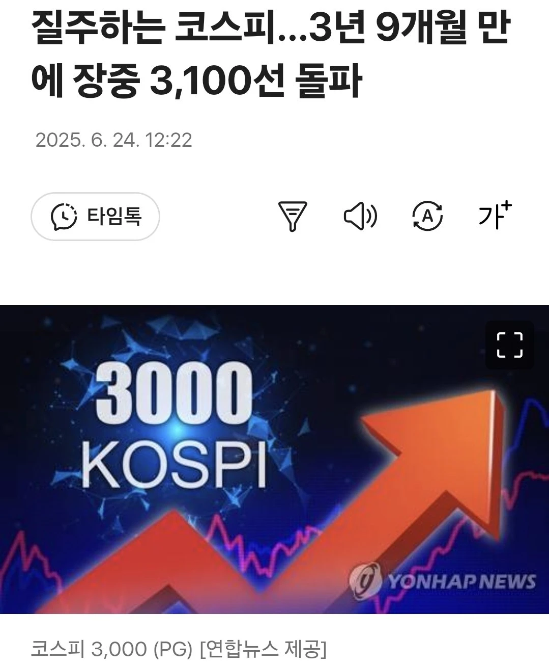 질주하는 코스피…3년 9개월 만에 장중 3,100선 돌파