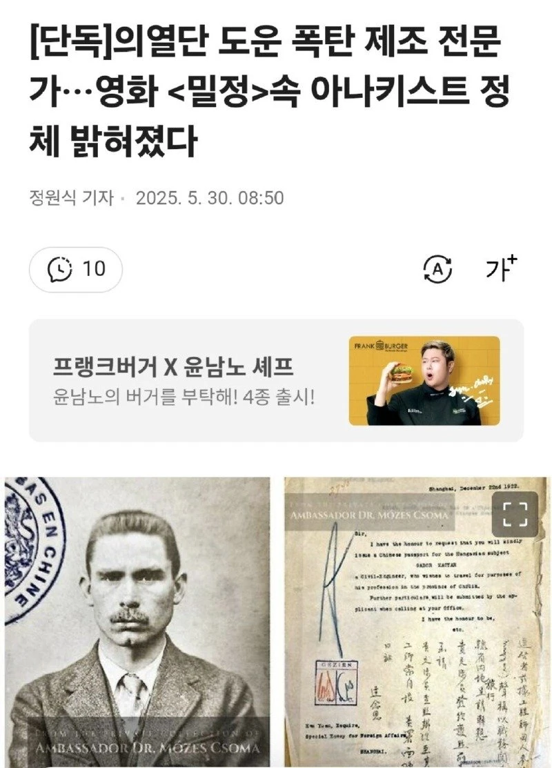 펌) 헝가리 출신 의열단 마자르선생이 드디어 밝혀지네요