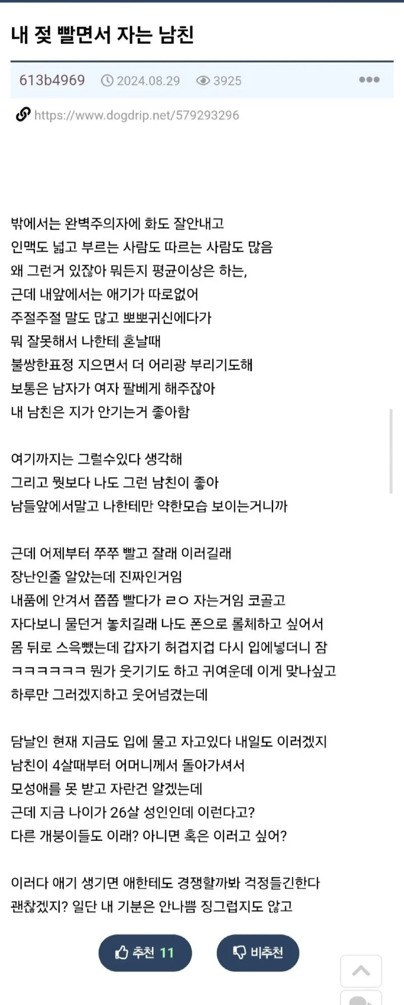 ㅇㅎ) 내 젖 빨면서 자는 남친