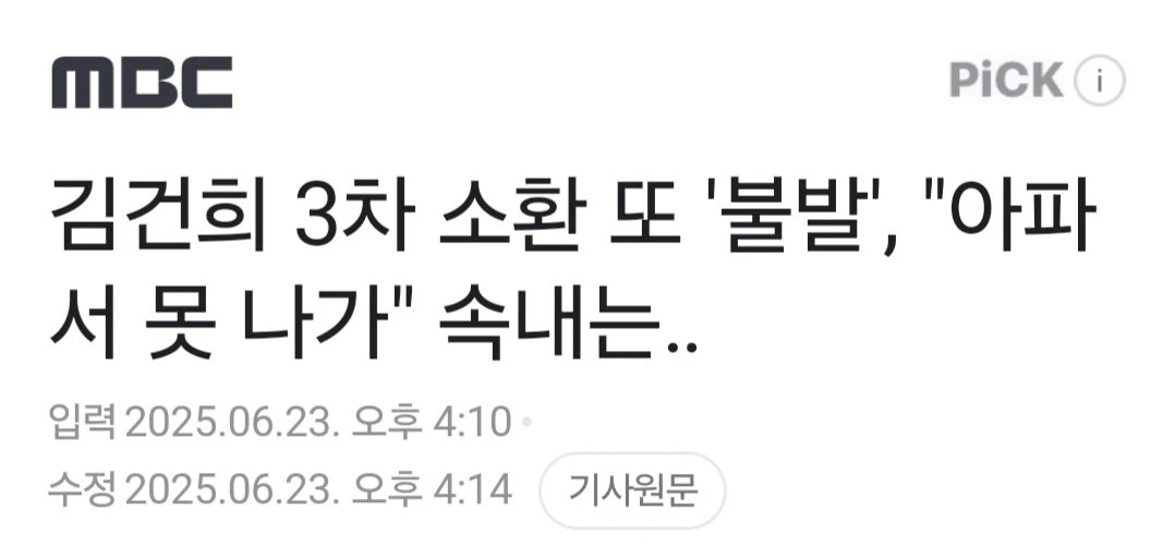 내란성괴 아프다고 징징거리며 3차소환 불발