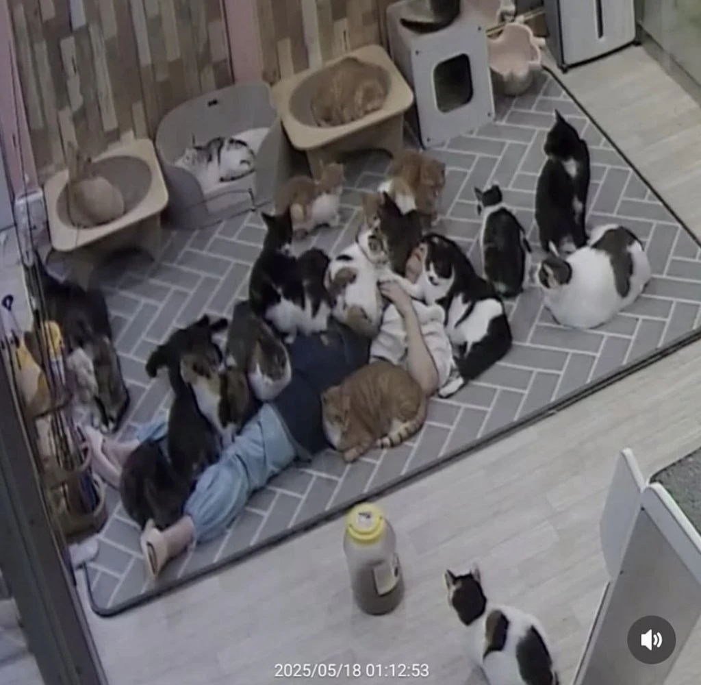 고양이 쉼터에서 6시간 잔 사람