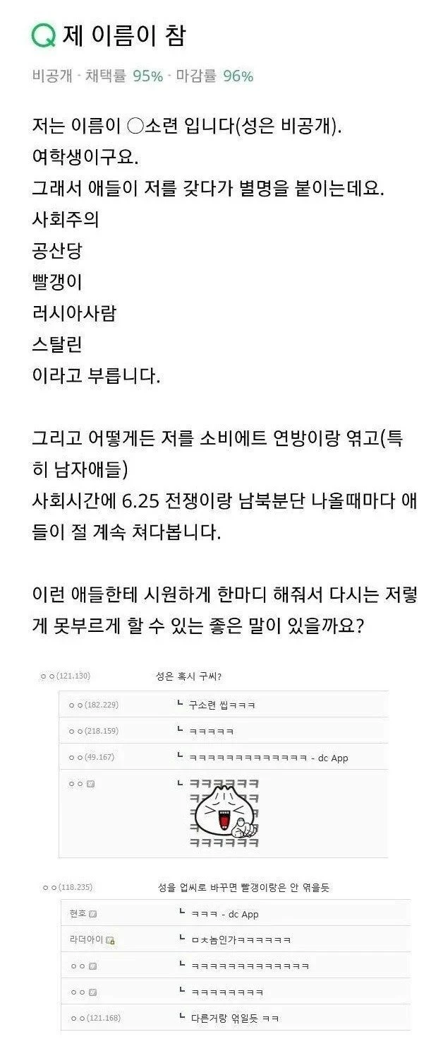 이름이 특이해서 고민이라는 여학생