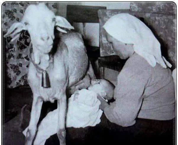 The  image you see is from 1927. In it, a newborn child is fed directly by a  goat (or perhaps a shorn sheep). And while it may seem strange to us  today, in its time it was an act of survival.
