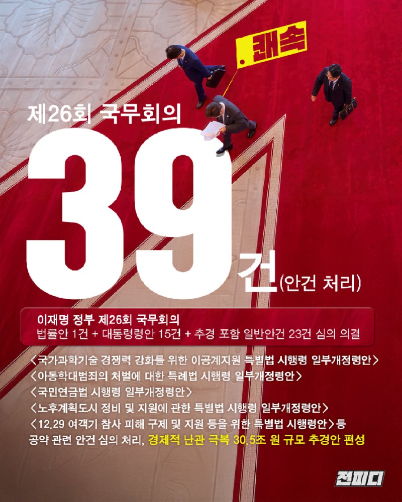 명쾌속 rotla 0 89 0 2025.06.29 19:55 이재명 대통령의 쾌속 횡보에 놀란다.제26회 국무회의에서, 39건의 안건을 심의•의결했다.추경안, 이공계 지원안 등 내용도 명쾌하다.하지만, 지지자로서 조금만 속도 조절을 부탁드린다. 5년은 길고, 건강은 유한하다.어쨌든, 대통령 참 잘 뽑았다! 0