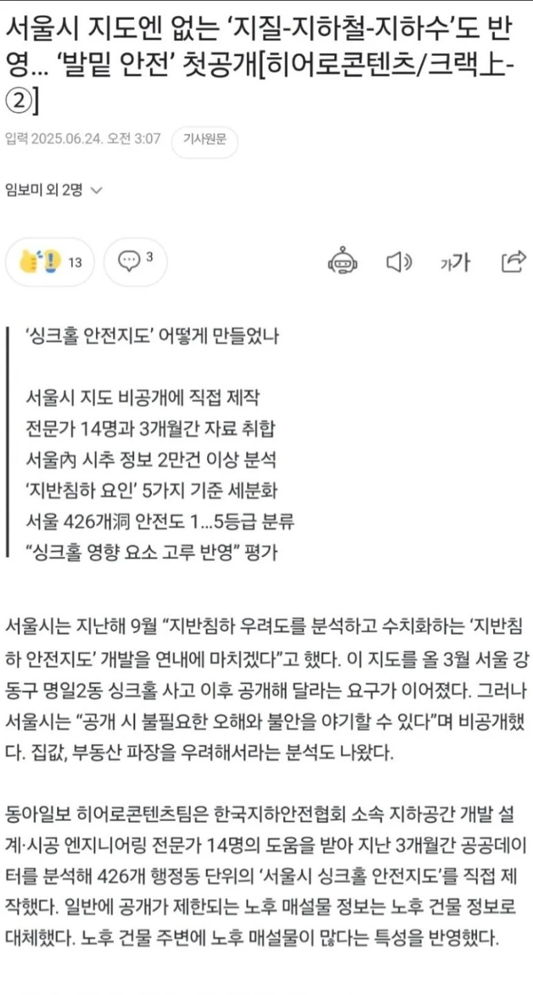 드디어 공개된 서울시 싱크홀 안전도