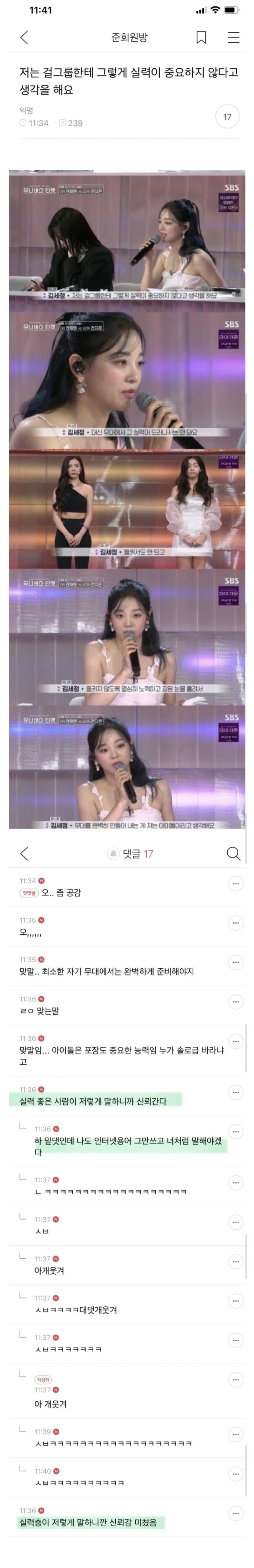 저는 걸그룹한테 그렇게 실력이 중요하지 않다고 생각해요