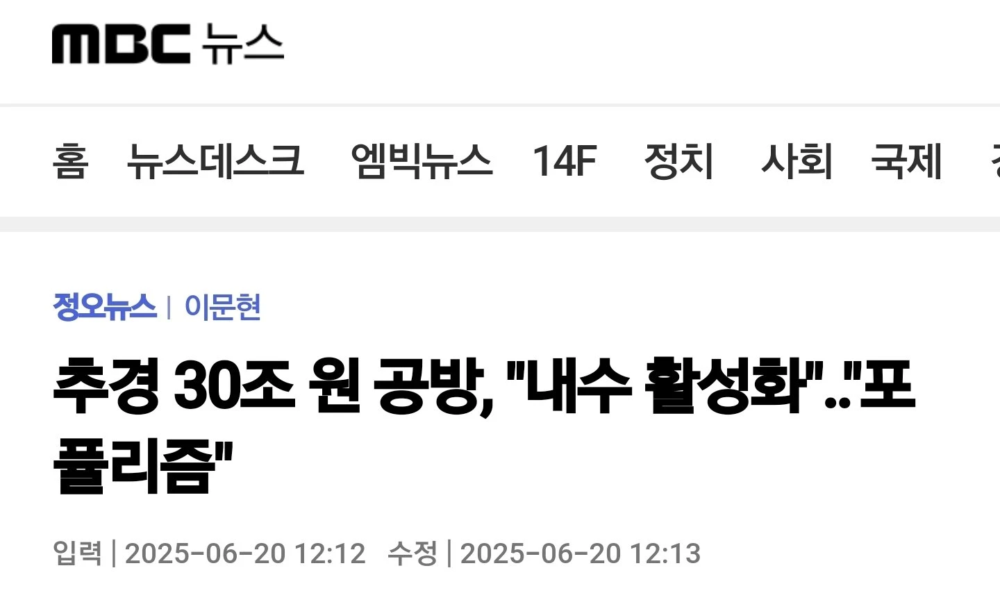 내란당의 개소리를 동등한 헤드라인으로 '포퓰리즘' 이라고 써 주는것