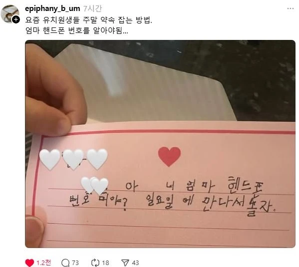 요즘 유치원생들 주말 약속 잡는 방법