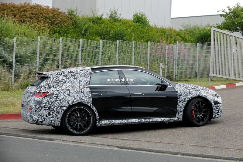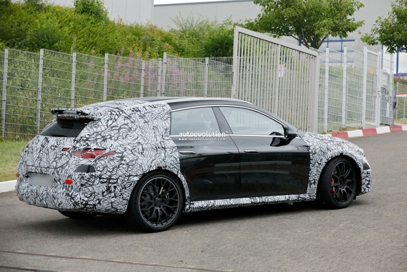 이번 프로토타입은 스타 패턴의 헤드라이트와 E-클래스 214 시리즈에서 먼저 선보인 테일램프 디자인을 공유하고 있으며, 후면에는 주행 중 다운포스를 향상시키는 전동식 액티브 스포일러가 적용되어 눈길을 끕니다. 고속 주행 안정성을 위한 공력 설계가 강조된 부분입니다.