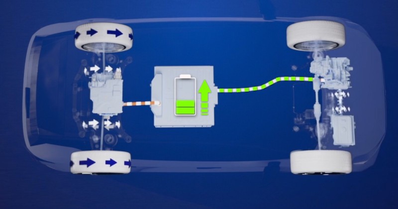 이 덕분에 모터-발전기가 앞바퀴도 굴릴 수 있어 사륜구동이 가능하다. 또한 앞바퀴와 분리된 상태에서 발전기 모드로 작동해 뒷바퀴로만 주행하면서 배터리를 충전할 수도 있다.