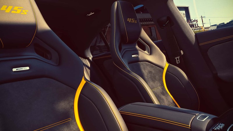 헤드레스트에는 자수 처리된 ‘45 S’ 엠블럼, 센터콘솔에는 “45 S Final Edition” 메탈 엠블럼, AMG 로고가 들어간 옐로우 백라이트 도어 실 플레이트, 옐로우 스티칭이 더해진 AMG 전용 플로어 매트 등 세심한 디테일이 실내 곳곳을 채운다.