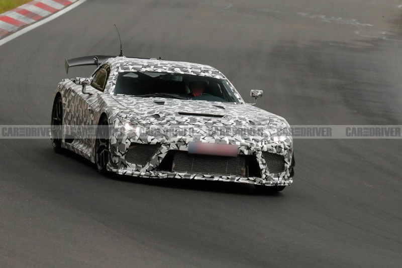 캘리포니아 빅베어 레이크 인근에서 포착된 테스트카는 좌측면과 후방의 모습만 확인됐지만, 쿼드 배기 시스템을 통해 내연기관 탑재는 명백하다. 앞서 뉘르부르크링에서 테스트 중이던 동일 모델 추정 차량들은 다양한 형태의 고정식 리어윙을 달고 있었고, 전기차 테스트에 자주 사용되는 노란 경고 스티커가 부착된 모습도 포착된 바 있다. 해당 프로토타입은 ‘링’에서 8분 이내 랩타임을 기록한 것으로 전해지며, 그 성능에 대한 기대감을 높였다.