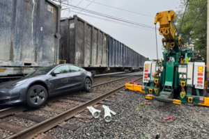 Tesla hit by train 1Tesla hit by train lifted crane 2