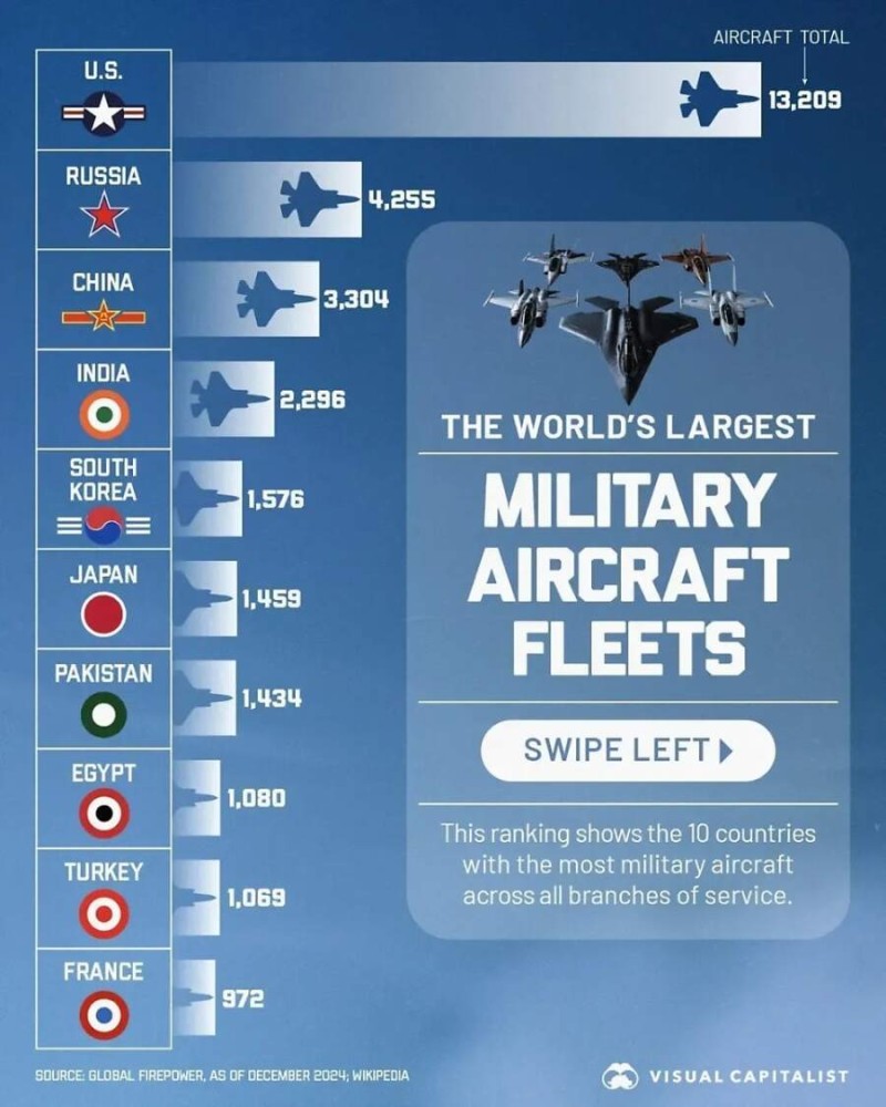 세계 공군 군용기 보유량 탑10