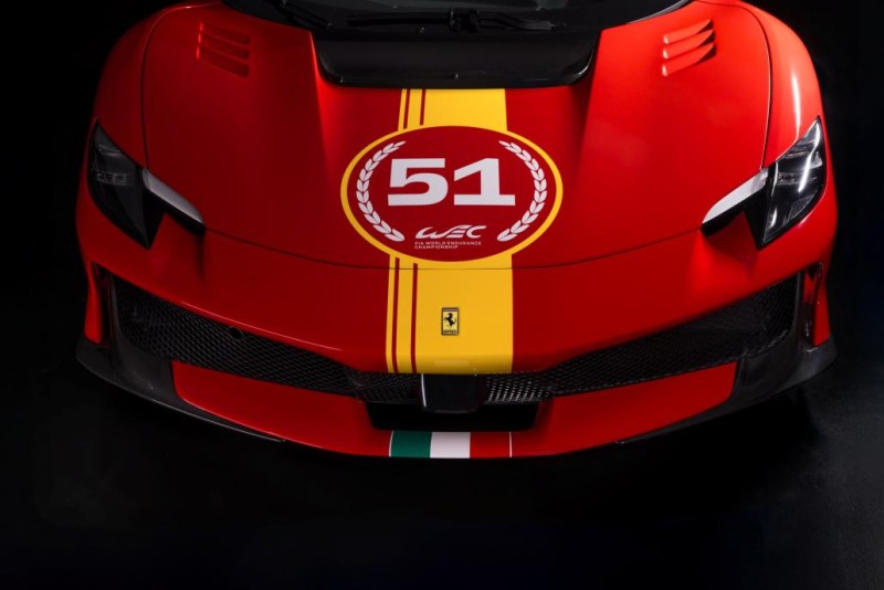 필로티 페라리 296 스페치알레는 레이싱에서 영감을 받은 네 가지 컬러인 로쏘 스쿠데리아(밝고 선명한 레드), 블루 투르 드 프랑스(메탈릭 네이비 블루), 네로 데이토나(메탈릭 블랙), 아르젠토 뉘르부르크링(메탈릭 실버)으로 제공된다. 외관 리버리는 499P에서 영감을 받은 지알로 모데나(강렬한 엘로우)로 마감됐으며, 수작업으로 그려진 WEC 로고와 전면 범퍼의 이탈리아 국기, 그리고 고객이 직접 선택할 수 있는 맞춤형 넘버가 더해졌다. 르망에서 공개된 모델에는 숫자 ‘51’이 새겨져 있는데, 이는 알레산드로 피에로 구이디(Alessandro Pier Guidi), 제임스 칼라도(James Calado), 안토니오 지오비나치(Antonio Giovinazzi)가 2023년 우승 당시 몰았던 차량 번호다. 참고로 2023년은 페라리가 최상위 내구 레이스 무대에 공식 복귀한 해이자, 르망 24시의 100주년이 되는 해였다.