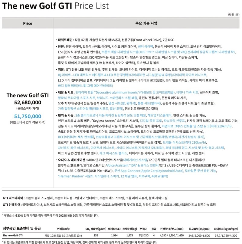 폭스바겐코리아, ‘신형 골프 GTI’ 출시... 판매가격 5,175만원
