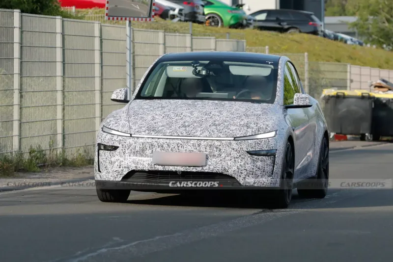 위장하고 뉘르부르크링에서 테스트 중인 테슬라 모델 Y의 고성능 모델입니다