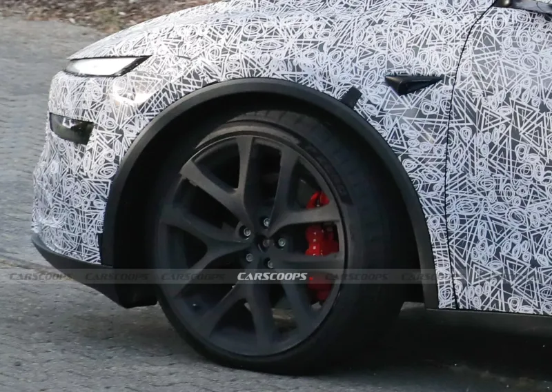 트렁크에 스포일러 달려있고, 모델S 플레이드에 있는 아라크니드 같은 휠도 보이더군요. 아마 21인치일 텐데 피렐리 P제로 타이어 신었습니다.