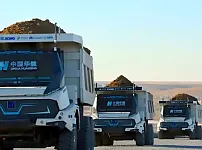 화웨이의 5G-Advanced 네트워크 기술을 바탕으로, 화능 루이치(Huaneng Ruichi)의 100대 이상의 전기 자율주행 운반 트럭이 내몽골 이민(Yimin) 노천 광…