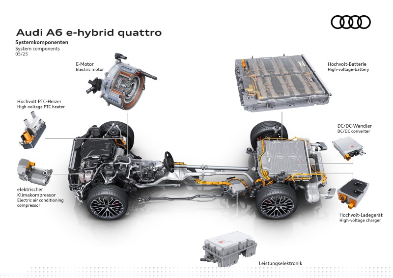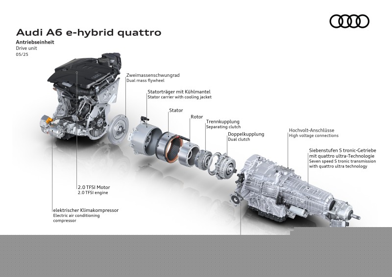 아우디가 'e-하이브리드(e-hybrid)'라는 새 이름을 붙인 플러그인 하이브리드 모델을 220kW와 270kW 두 가지 출력으로 내놓았다. 이 차량에는 185kW 출력의 2리터 4기통 가솔린 엔진이 장착됐고, 최대 105kW짜리 전기 모터를 더해 270kW 시스템 출력을 낸다.