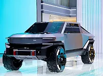 올해 상하이 모터쇼에서 GAC이 01 픽업트럭 컨셉카 내놨는데, 사이버트럭 느낌 디자인입니다. 각진 라인에 얇은 헤드라이트, 전폭 라이트바 같은 디테일 있고 붉은색 …