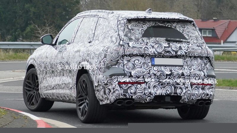 뉘르에서 테스트 중인 아우디 SQ7 신형입니다휠과 테일파이프에서 기본형과 차이가 있답니다