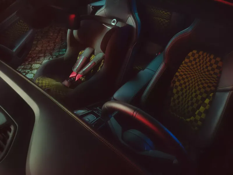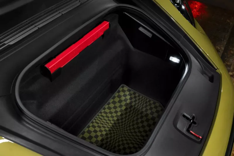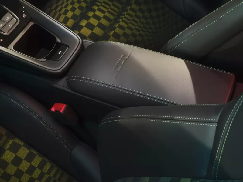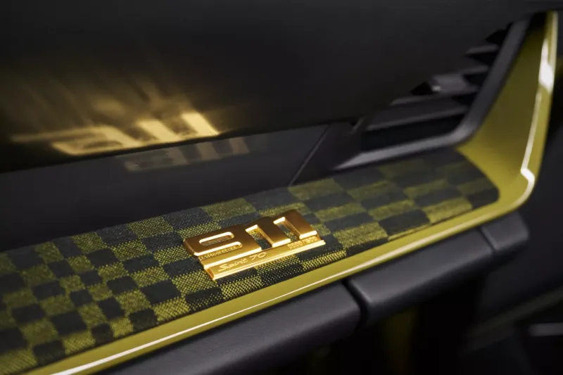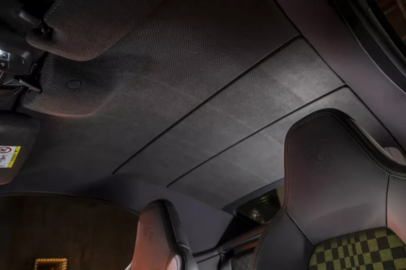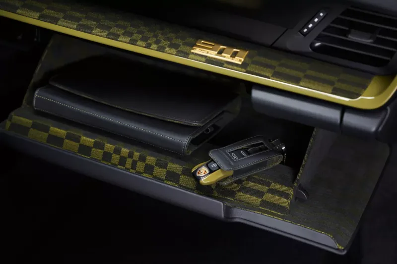 인테리어의 하이라이트는 블랙 컬러와 올리브 네오 컬러가 조화를 이루는 아이코닉한 파샤 패브릭 패턴이다. 원단의 그래픽 디자인은 휘날리는 체커기를 연상시킨다. 다양한 크기의 직사각형이 정교하게 배열되어 패턴 속에서 움직임을 만들어낸다. 911 스피릿 70에는 기존 모델에서 사용된 자카드 벨루어 (jacquard velour) 대신, 플로킹 처리된 원단이 결합된 소재가 적용되어 더욱 스포티한 감성과 향상된 촉감, 그리고 장거리 주행 시 뛰어난 편안함을 제공한다.