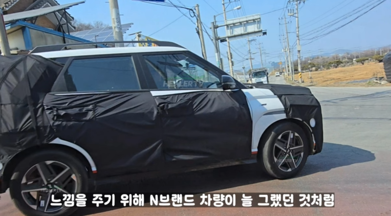 현대차 베뉴 N 라인 위장막 차량입니다 튜9 0 173 0 2025.04.18 13:58 베뉴 중에서도 N 라인입니다그릴이 다르고 위장막 사이로 옆구리에 빨간 라인이 보이네요휠에도 N이 선명하고요힐러티비 펌 0